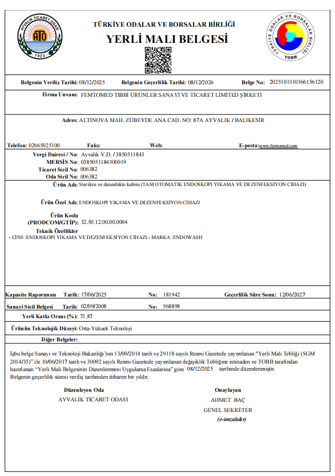 FemtoMed is a pioneering organization in Turkey that manufactures Fully Automatic Endoscopy Washing and Disinfection Devices, a technology produced in only a few countries worldwide. Established with domestic capital, our company stands out as the largest investment ever made in this field in our country, becoming a symbol of Turkey’s domestic production strength.